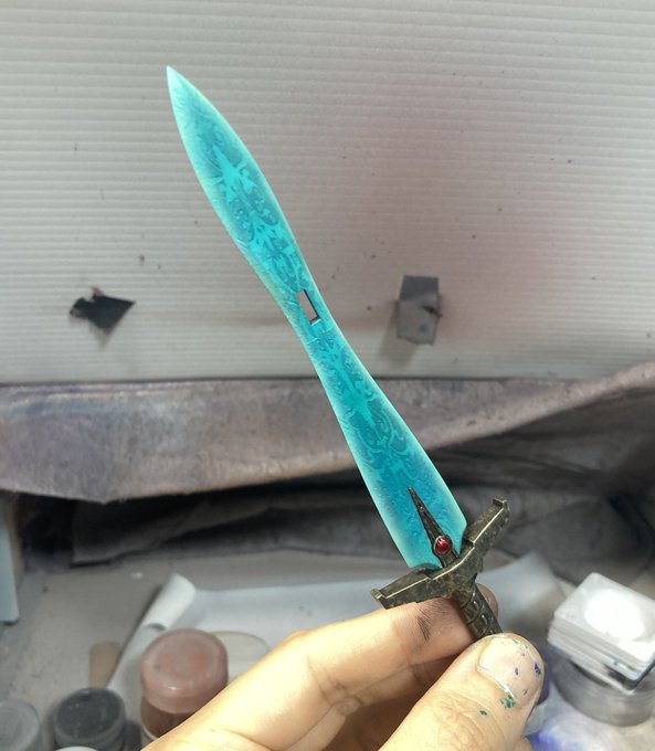 ことぶき先生にイラストをお願いする際に「完成品(彩色済み)を見て描くよ、という事だったのですが、塗装の際にトラブル続きで、遅れに遅れまくって😥 結局彩色中のモノを組み立て「このアングルで」とお願いしました。 まさか自分のガレキを元にイラスト描いて頂けるとは🥲 #WF2023S #DAICONIV40th