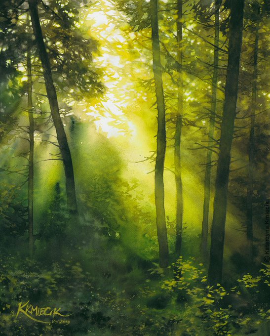 If you are anything like me, you probably want to jump right into that picture! RT if you like it 😊 "Light in the Dark Forest", #watercolor on paper, 41x51cm (16x20"), 2019 Prints and the original painting: bit.ly/light-in-dark-… bit.ly/light-in-dark-… #darkforest
