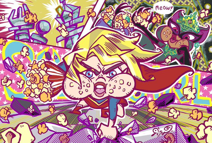 【イラスト】 『DCwithポップコーン』 《スーパーガールvsキャットウーマン》 SUPERGIRL vs CATWOMAN #DCスーパーヒーローガールズ #dcsuperherogirls #スーパーガール #キャットウーマン #supergirl #catwoman #ポップコーン