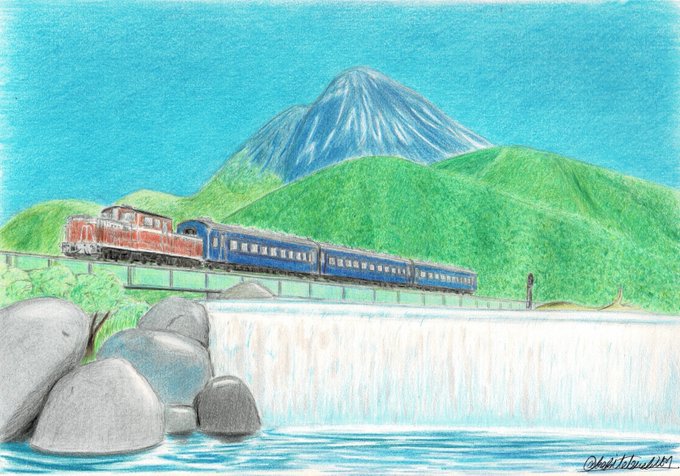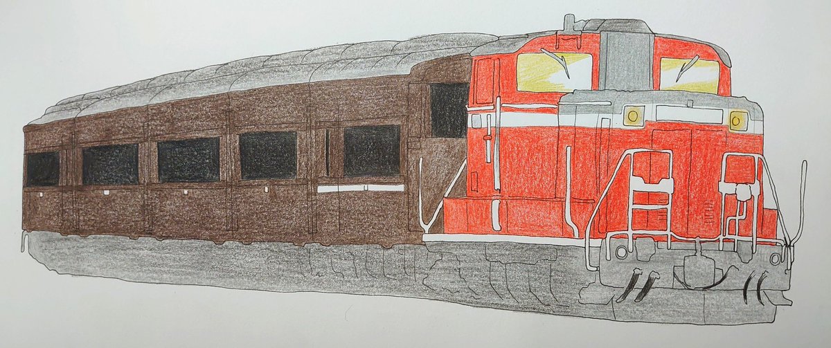 DLやまぐち号(SL代機運用)version DD51が牽引するオハ35系客車も味わい深い! #イラスト #イラスト好きな人と繋がりたい #絵描きさんと繫がりたい #鉄道 #JR西日本 #SLやまぐち号 #DLやまぐち号 #DD51