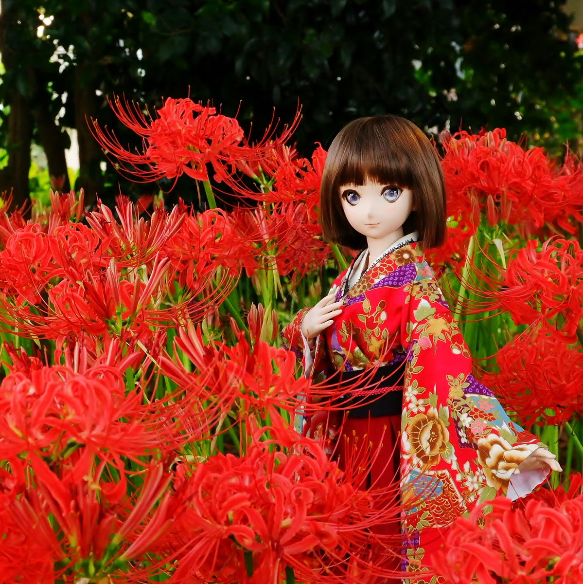 曼珠沙華 と カリンさん 上志津原ふれあい通り で撮影したよ! #今夜のドール撮影120分一本勝負 お題【ぬぐ】今日! 花粉が少し付いたから後でぬぐったよ! #うちのこに癒され24時間 #うちのこかわいい #うちの子かわいい #ドールオーナーさんと繋がりたい #深夜のドール撮影60分一本勝負 #DDSカリン
