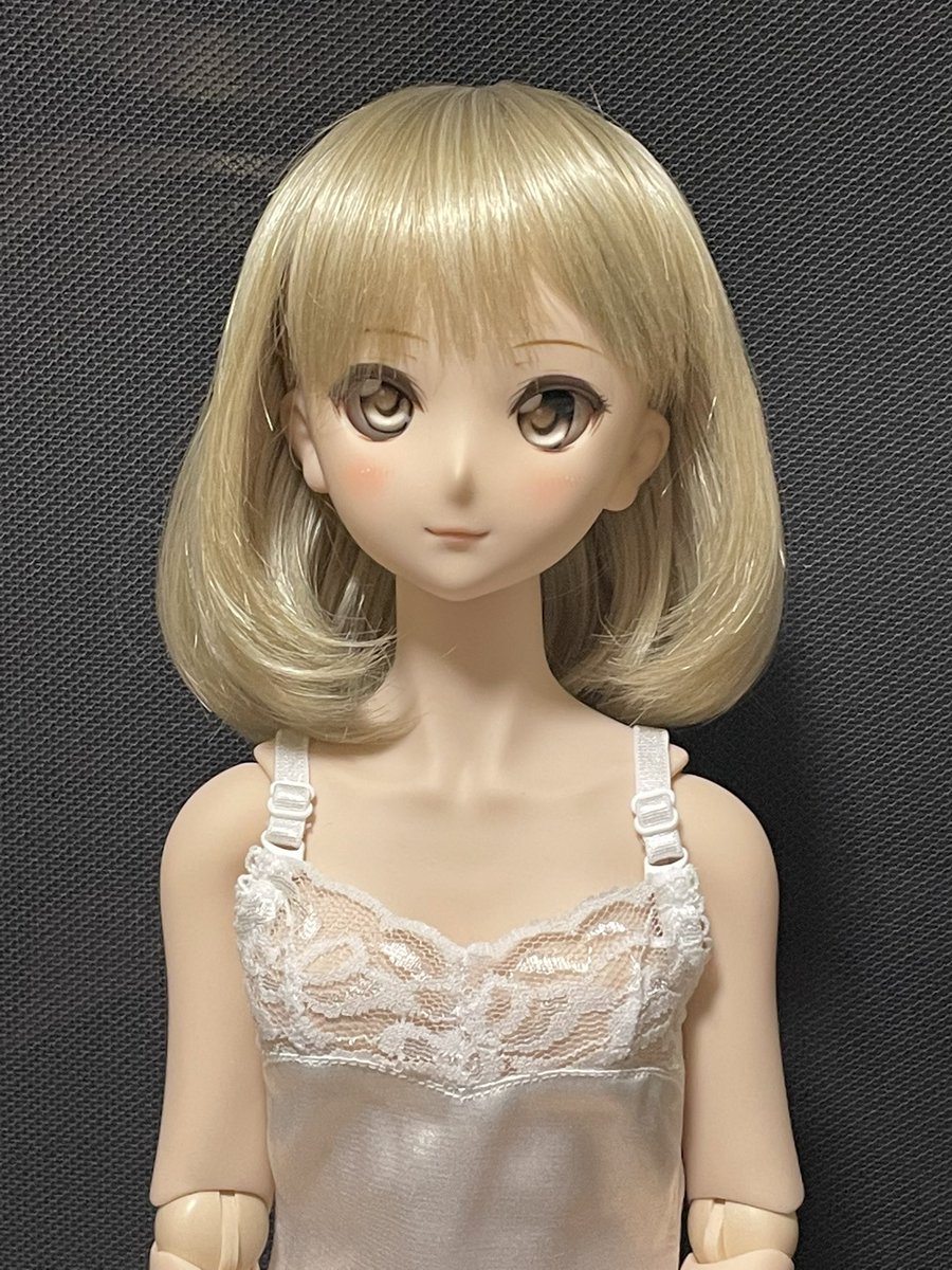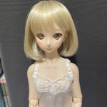 うちの子です(名前は考え中)、カリンちゃんのアイをアニメティックアイのしっこくに交換して、ウイックは前買ってたDOLLCEさんの砂色のウィッグをつけました♪よろしくお願いします♪ #ドルフィードリーム #DDSカリン