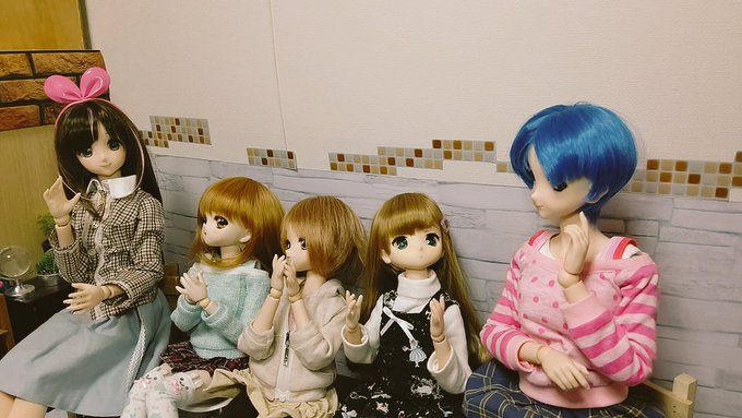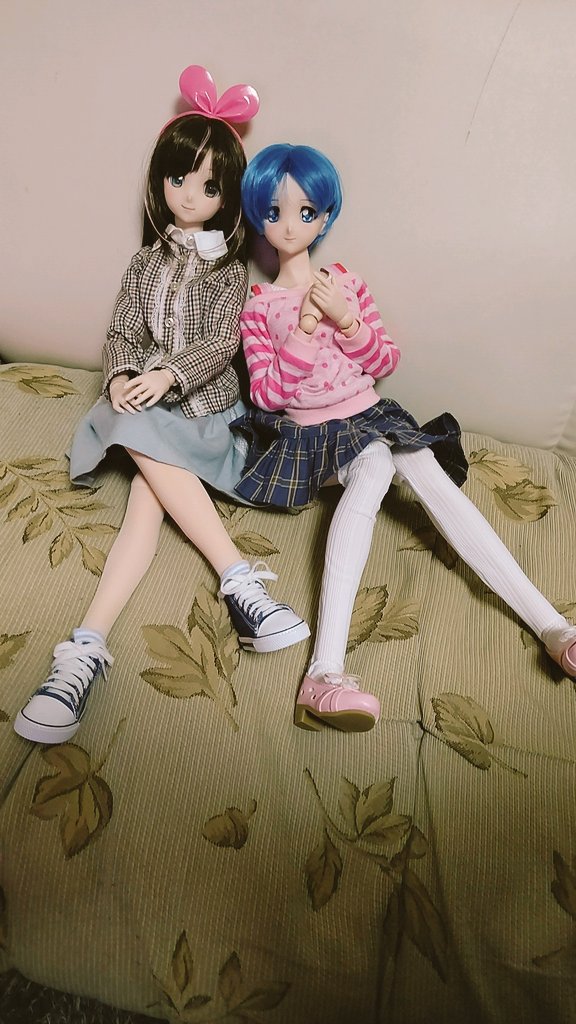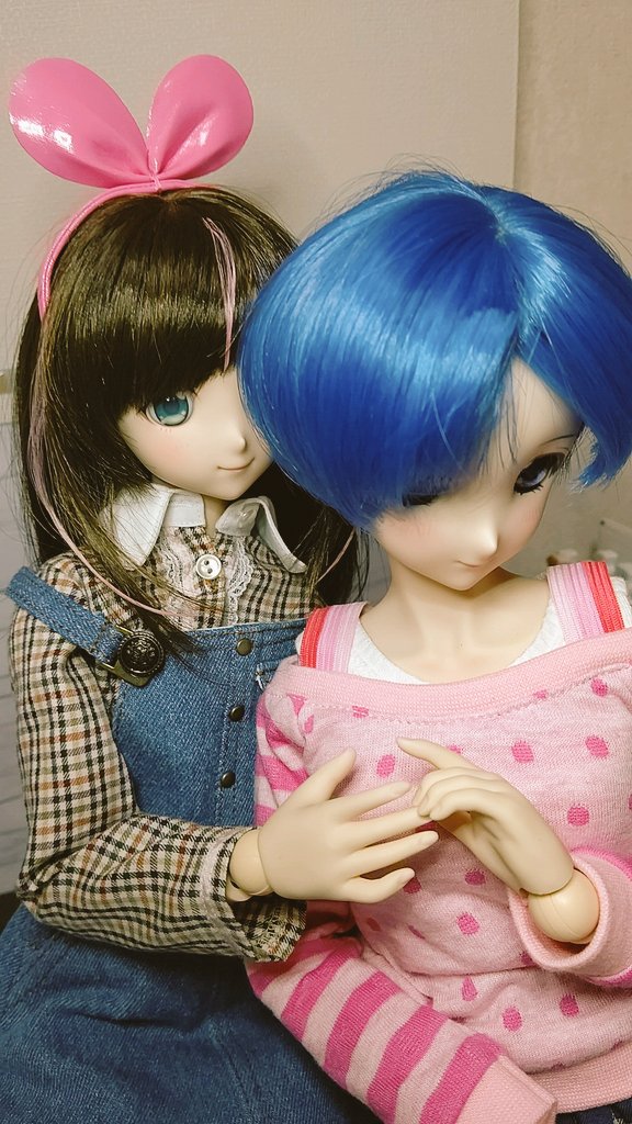 #今夜のドール撮影120分一本勝負 【よりそう】 我が家の子達は、寄り添って座るのが好きみたい(๑♡∀♡๑) #うちのこかわいい #MDDレナ #ドルチェドール #あーすりっ娘 #DDSセーラーマーキュリー #DDSキズナアイ