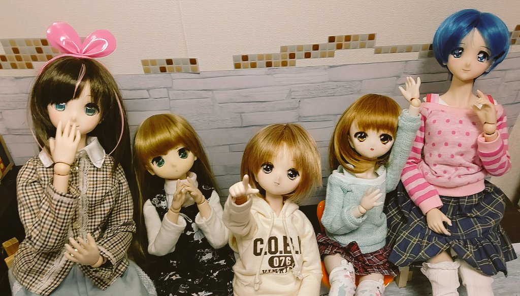 #今夜のドール撮影120分一本勝負 【こいびと】 (゚∀。)<この中から1人だけ恋人なんて選べない~(〃°Д°〃)デュフ… 『また何か妄想してる…(´・ω・`)』 #うちのこかわいい #MDDレナ #ドルチェドール #あーすりっ娘 #DDSセーラーマーキュリー #DDSキズナアイ