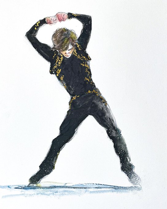 Afternoon Doodle 🎨✏️⠀ ⠀ かっこいいところ ⛸ (かっこいいところだらけだけど!)⠀ ⠀ ⠀⠀⠀⠀ #shomauno #宇野昌磨 #weloveyoushoma #goodluckshoma #watercolor #水彩 ⠀ #tintedcharcoal #derwent⠀⠀ #絵墨
