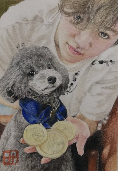 まだやってます💧 #shomatober2021 Day18:Dogs triple gold🥇🥇🥇 夢じゃなく目標の世界王者✨ おめでとう😭❤️ ●葉書サイズ ● #色鉛筆 #derwent #カランダッシュ #GoShoma #宇野昌磨 #ShomaUno #宇野昌磨WON #ShomaUnoWON #shomatober #inktober #peaceforUkraina #peaceforRussia