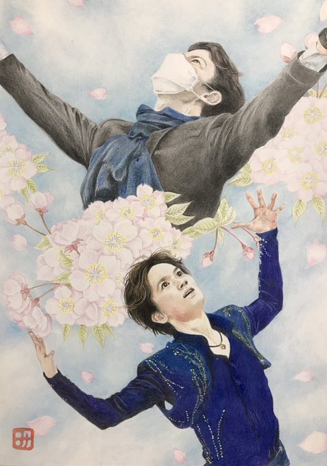 まだやってます💧 #shomatober2021 Day24:Japan 桜咲いた🌸 昌磨君とステファンのワールド2022 ●A4サイズ ● #色鉛筆 #derwent #カランダッシュ #GoShoma #宇野昌磨 #ShomaUno #宇野昌磨WON #ShomaUnoWON #shomatober #inktober #peaceforUkraina #peaceforRussia