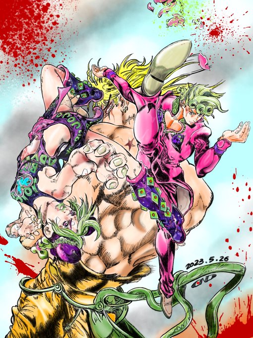背景がイメージなかったから〜失敗だなぁ〜🥶とりあえず、完成にして考えよう〜🧐 #五島列島 #福江島 #ibispaint #drawing #二次創作物 #ラクガキ #ジョジョの奇妙な冒険 #空条徐倫 #ジョルノジョバァーナ #diobrando #脳梗塞リハビリ