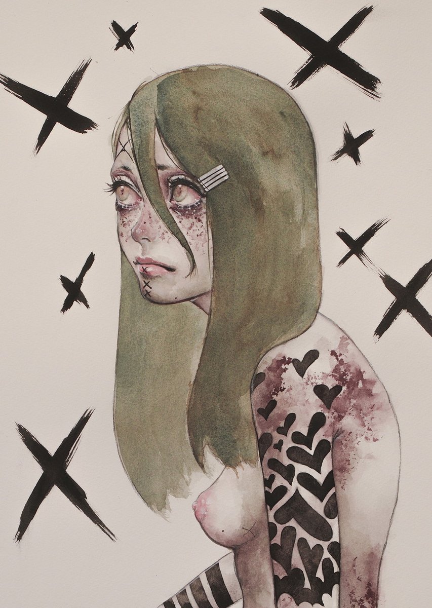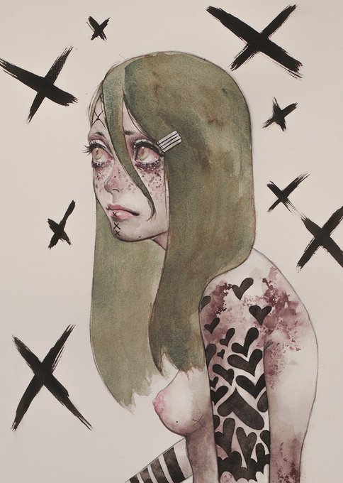 君の憑り代 2022 watercolor size:A3 (297mm×420mm) #srbgenk #DISPELGIRL #art #artist #artwork #watercolor #水彩画 #水彩 #painting #絵 #イラスト #fetishart #bizzareart #japaneseartist #tattoo #tattooart