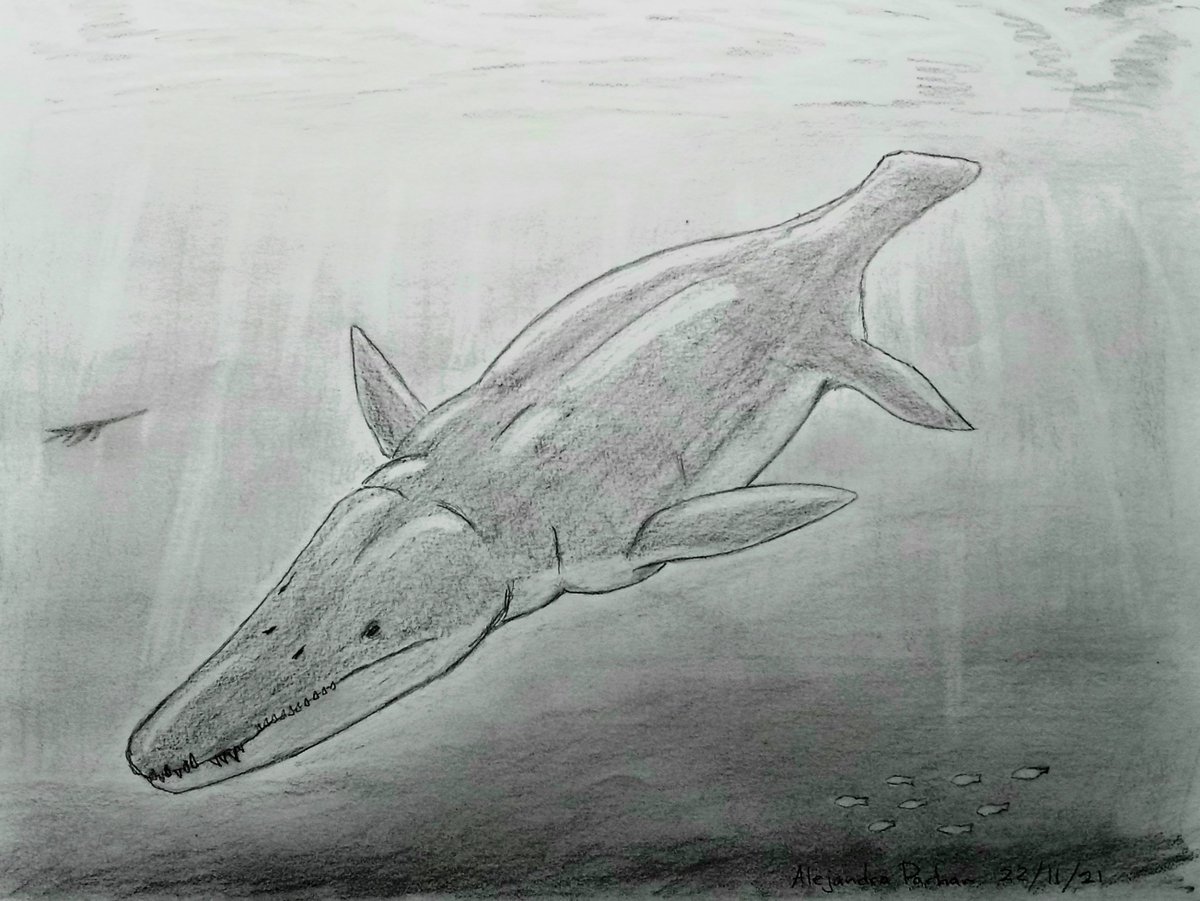 Día 22 de #dinovember2021 #dinovember y hoy les traemos a un enorme y poderoso reptil marino, Sachicasaurus vitae, un pliosaurio brachauchenino del cretácico inferior de Colombia. doi.org/10.15446/esrj.… #paleoart #pliosaur