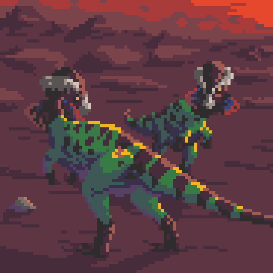 Next #dinovember day - now its a pair of stegoceras validum males, defiantly threatening each other. I decided to add speculative frill on the necks, like the one that frilled lizard has. Also worked a little on bg. #Dinovember2021 #paleoart #pixelart #art #draw #stegoceras