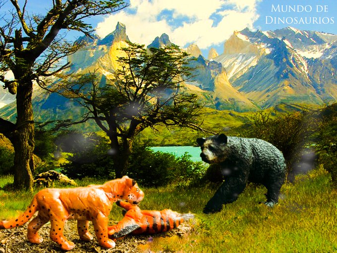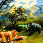 Dia 14 de #dinovember #Dinovember2021 me he ausentado varios dias pero para compensarlos les traigo esta obra: Panthera atrox vs Arctotherium angustidens, pleistoceno de Sudamérica. #paleoart #paleontology #pleistoceno #iceage #arctotherium