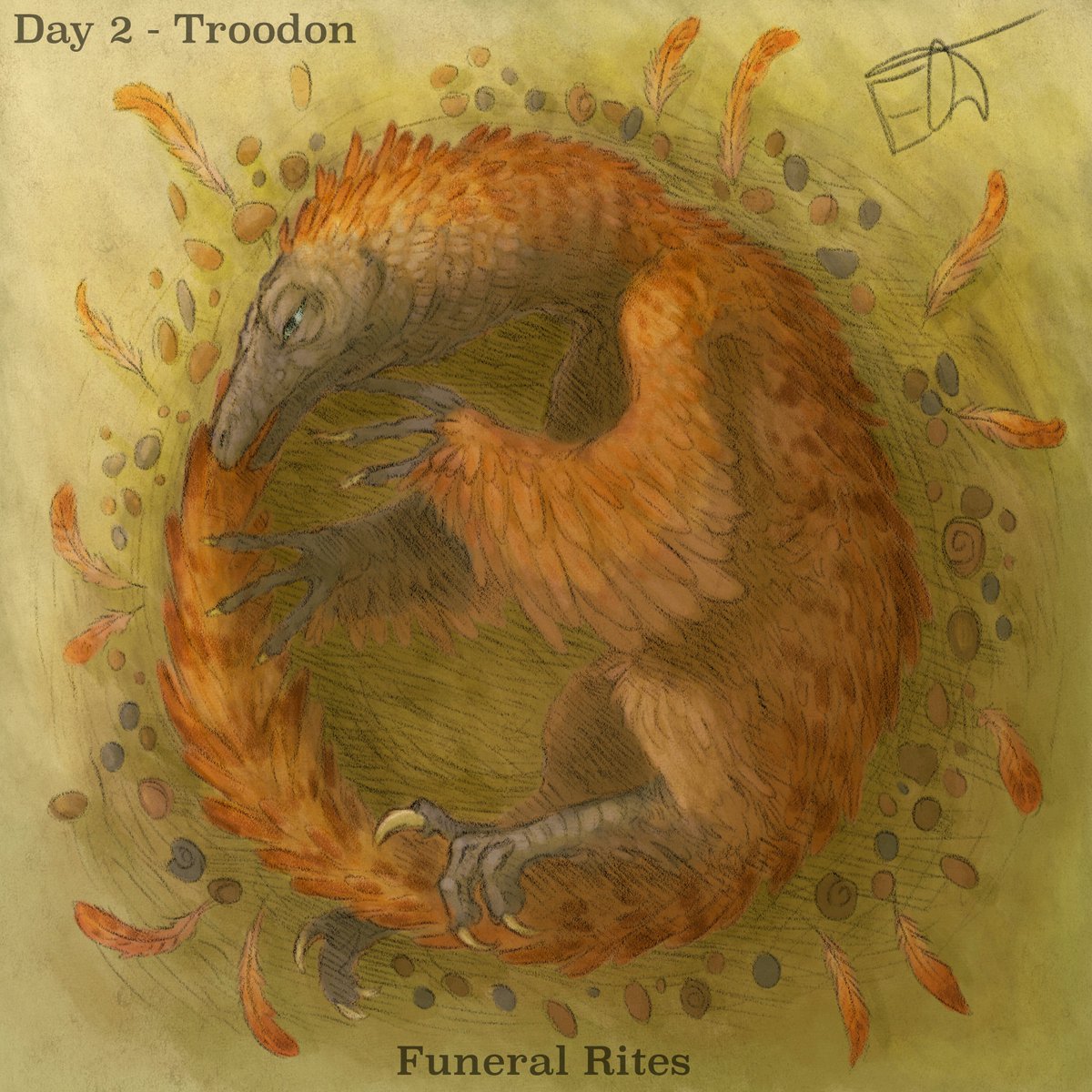 Day 6 of #PRDinovember2021. Gnathovorax cabreirai engages in an afternoon dust bath underneath the shade of a nearby tree. #paleoart #paleontology #Dinovember #Dinovember2021 #DigitalArtist #digitalart