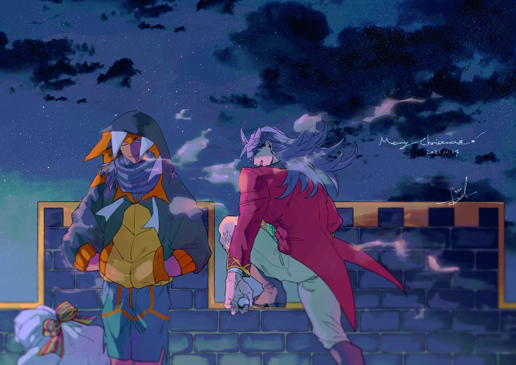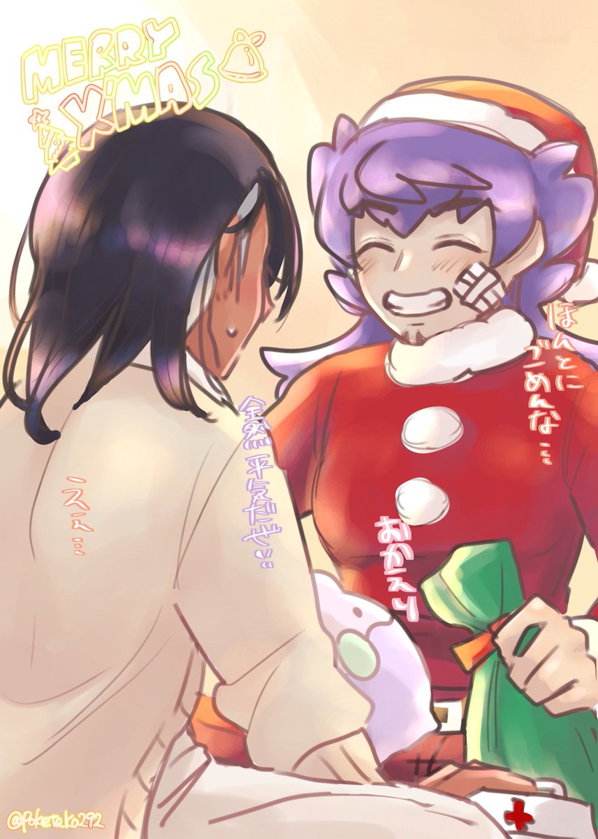 メリクリ🎄🎁 dnkb/ダンキバ 今年も落書きですが去年髪で遊ばれたので今年は2人でツリーの飾り引っこ抜いてやり合いっこしてもらいました ンデさん不器用リボンぐっちゃぐちゃだと可愛い エアオンリー開催おめでとうございます #DK_aironly