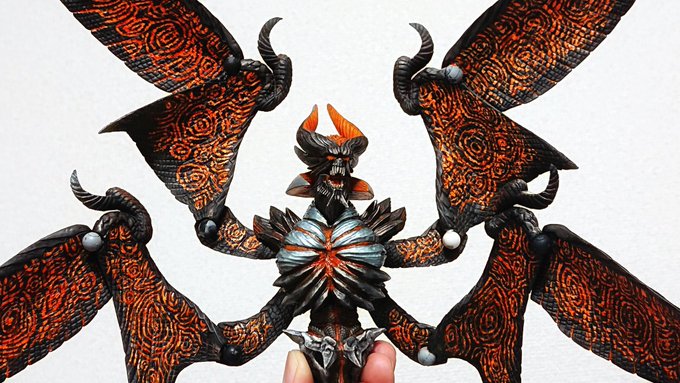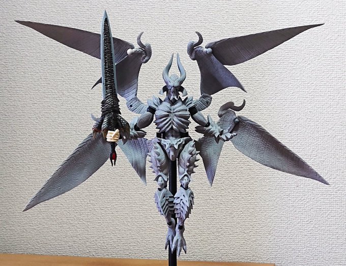 真魔人ダンテversion2完成しました😀✨ 前回作ったものより可動箇所や台座等を改良して、より動きを出せるようにしました🛠️特に口や羽の可動が大幅にパワーアップしてます😄 #DevilMayCry5 #DMC5SE #DMC5