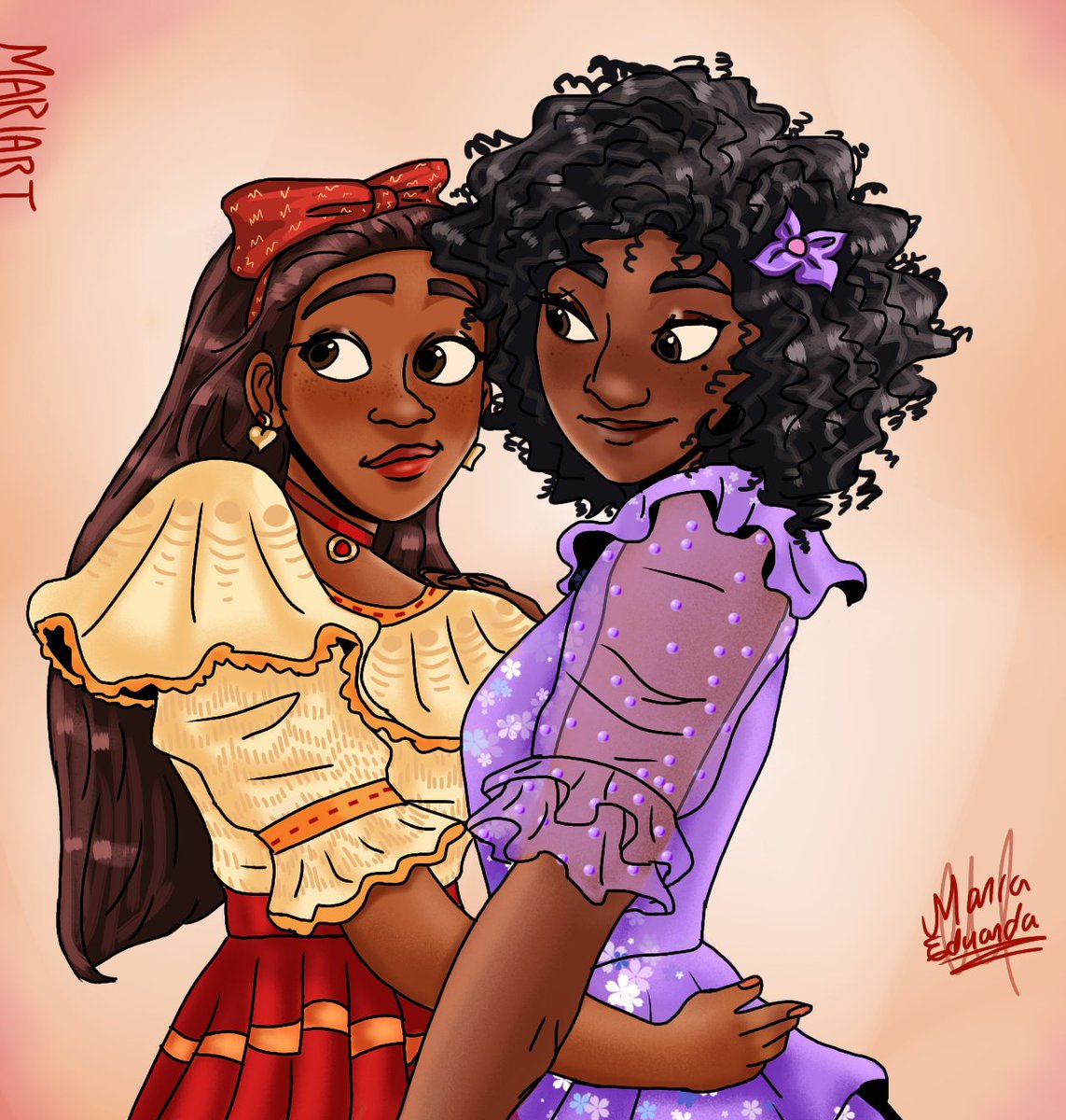 Me puse a buscar fanarts de Isabela con cabello rizado, y de Dolores con cabello lacio, y curiosamente encontré solo uno de Isabela, y NINGUNO, de Dolores! Así que pensé: ¿por qué no? Y luego salió esta💜 #Encanto #encantotwt #encantofanart #doloisa #dolores #isabelamadrigal