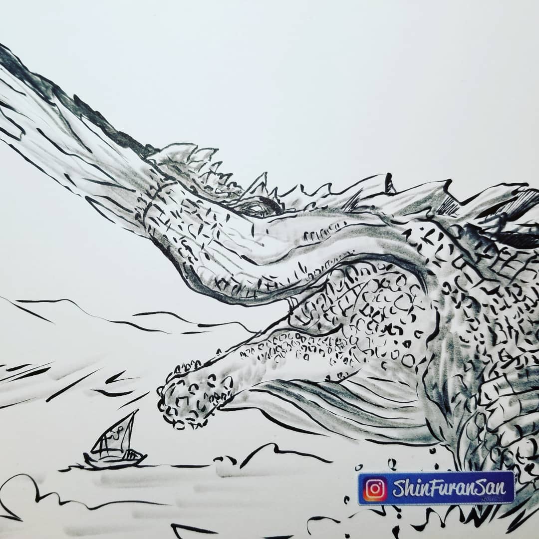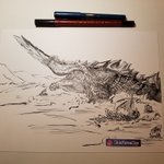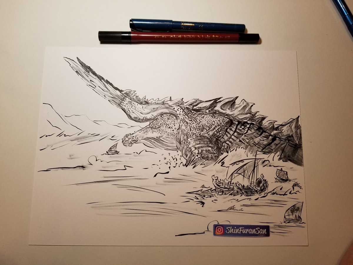 DAY31 - Crest Mountain Dragon: Jhen Mohran 🔹 Did this one on a 8x11in paper (not 6x6in). With this I'm bloody done and my Kuretake pen is officially dead. . #inktober #inktober2018 #monsterhunter #mh3u #jhenmohran #capcom #elderdragon #kuretake #ink #shinfuransan #day31 #done