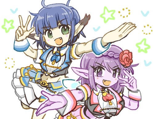 #DQ10マイキャラ交流作品投稿タグ ティラミスさん宅のティラミスちゃんとうちの祈のメスガキ組でうちよそ交流描かせてもらいました!プクレットの演芸大会のダンス部門で賞金を狙えないかと珍しくまともな金稼ぎをたくらむ祈。偶然通りかかったティラミスちゃんをペアに拉致。「オマエ顔だけなら↓
