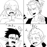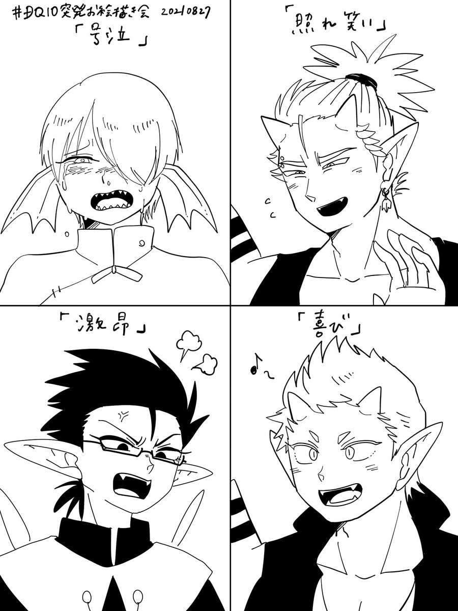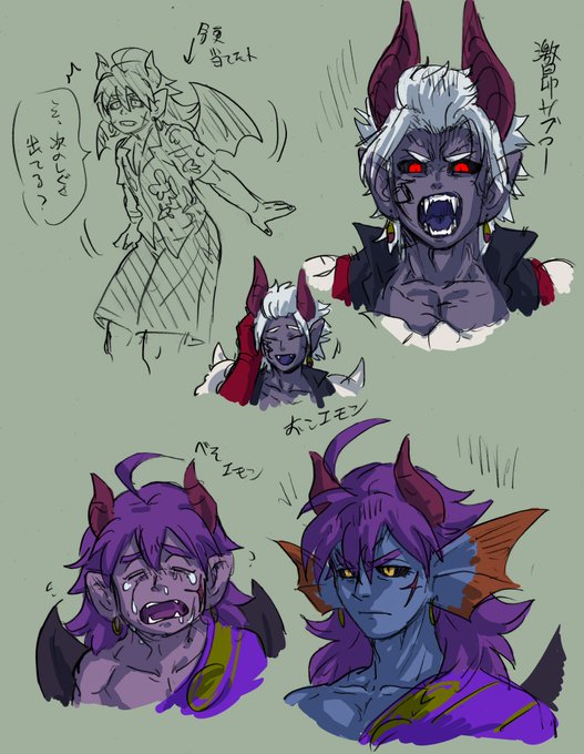 #DQ10突発お絵描き会 怒ったり泣いたり ゴエモンが怒るのはレアかな? サブローは激昂すると目の色が変わります 信じられないかもしれませんが、私がそういう顔を描くのが好きなだけで、サブローは普段とても穏やかで友好的なんです信じて…! 一旦キレるとすさまじく凶暴になるけど…