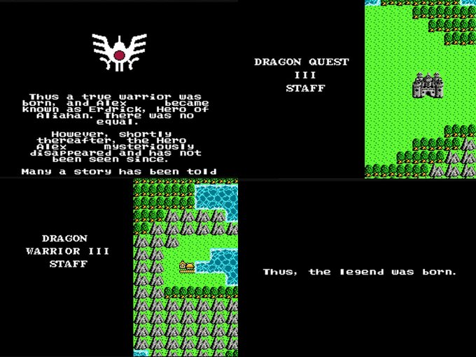 海外版のドラクエⅢのエンドロールは、国内版より少し長い。移植スタッフ分長尺となるワケだが、EDテーマ「そして伝説へ」の間に、アレフガルドのテーマが流れる編曲となっている。勿論、監修はすぎやま先生。当然、移植スタッフもチュンソフトである。 #Dragon_Warrior3 #ドラクエ3 #DQ3