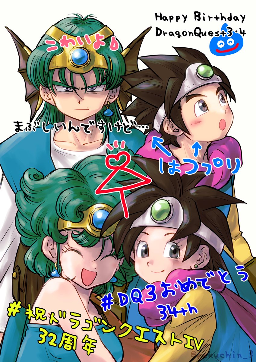 #DQ3おめでとう34th #祝ドラゴンクエストIII34周年 #祝ドラゴンクエストIV32周年 どこで撮ったのかは分かりませんが、4人から写真が届きました 皆のお誕生日のようです㊗おめでとうございます🎉