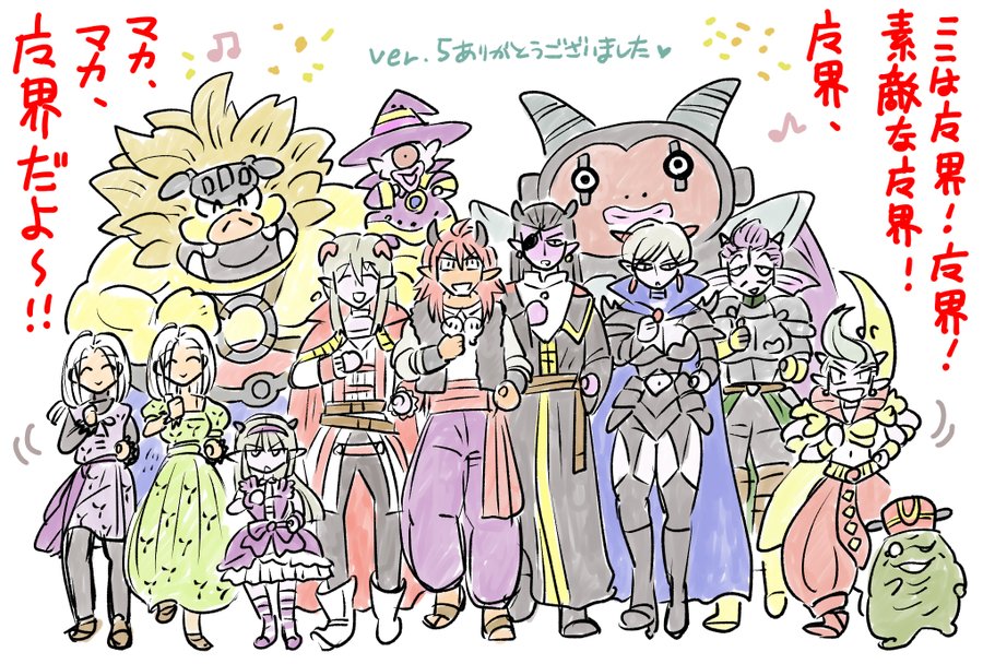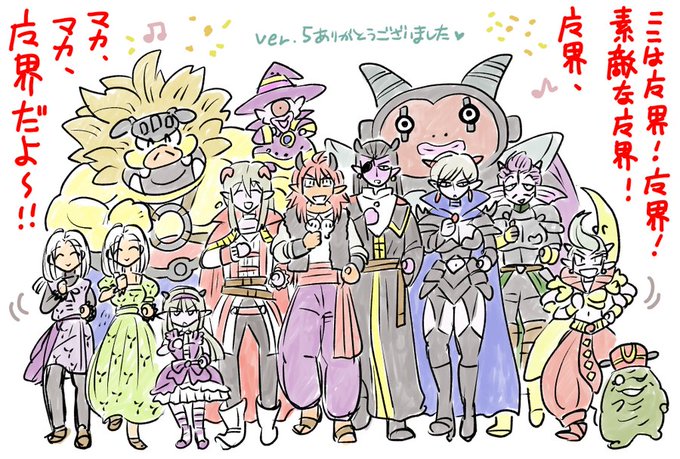 改めまして10周年おめでとうございます! マデサで描かせて頂いたイラストとX覧会に応募したイラストを少し色調変えてみました。 描かせて下さったフレさんありがとうございました~!警部のドラキーTシャツめっちゃうまく描けたと思ってます(自画自賛) #DQ10 #DQX10th #ありがとうアストルティア