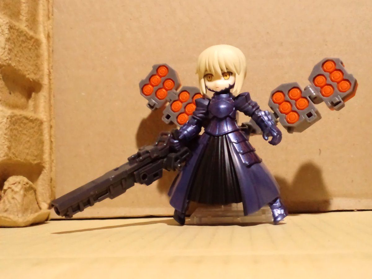 【今朝のブンドド。】 #デスクトップアーミー #DTAカスタムオンリー2021コラボ 『セイバーオルタ/アーチャー』 本体 : セイバーオルタ 使用パーツ ・フレイヤB/05ランチャー ・轟雷【一式】 …近接戦を捨てて遠隔戦にコンセプト変更のため、アーチャーにクラスチェンジした黒セイバー。