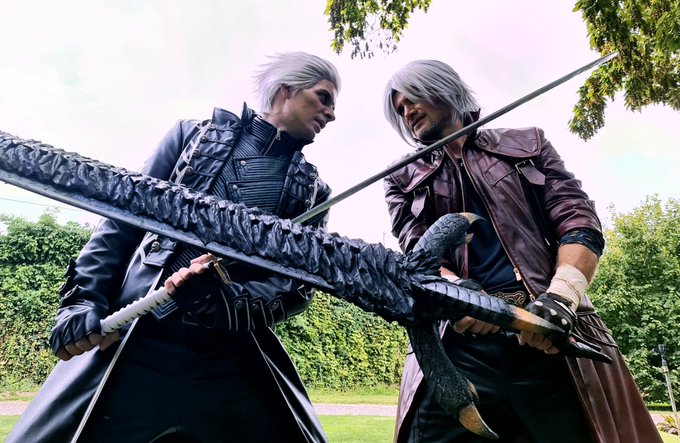 Dante: Hey Vergil, your portal-opening days are over. Give me the Yamato. Vergil: If you want it, then you'll have to take it. But you already knew that. Dante: I had a feeling you'd say that... #Dante #Vergil #cosplay #Yamato #DMC5 #dantecosplay #dmc5cosplay #DevilMayCry #DmC