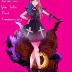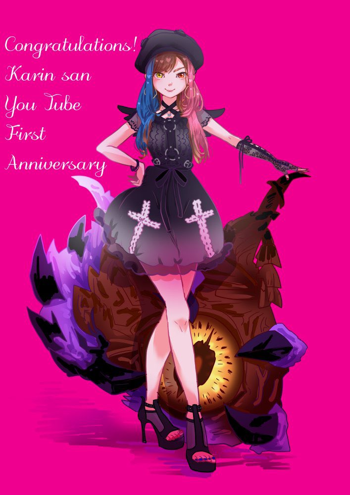 ららねくさん!毎年、周年記念イラストありがとうございます😭😭💓💓 配信で好き!って言ったものなどを本当にいつもよく見て聞いて下さってて嬉しいやつ、、😭😭✨✨今回好きな色の背景に大好きブルハムにせつむりマイラのマミさん靴シューロゴワンピ😭💓愛しかない😭💓 #かりん荘 #DarkCrown