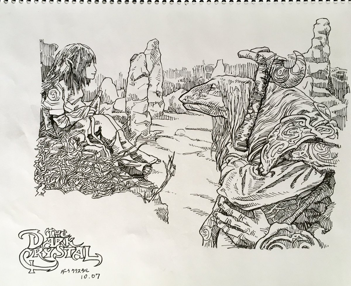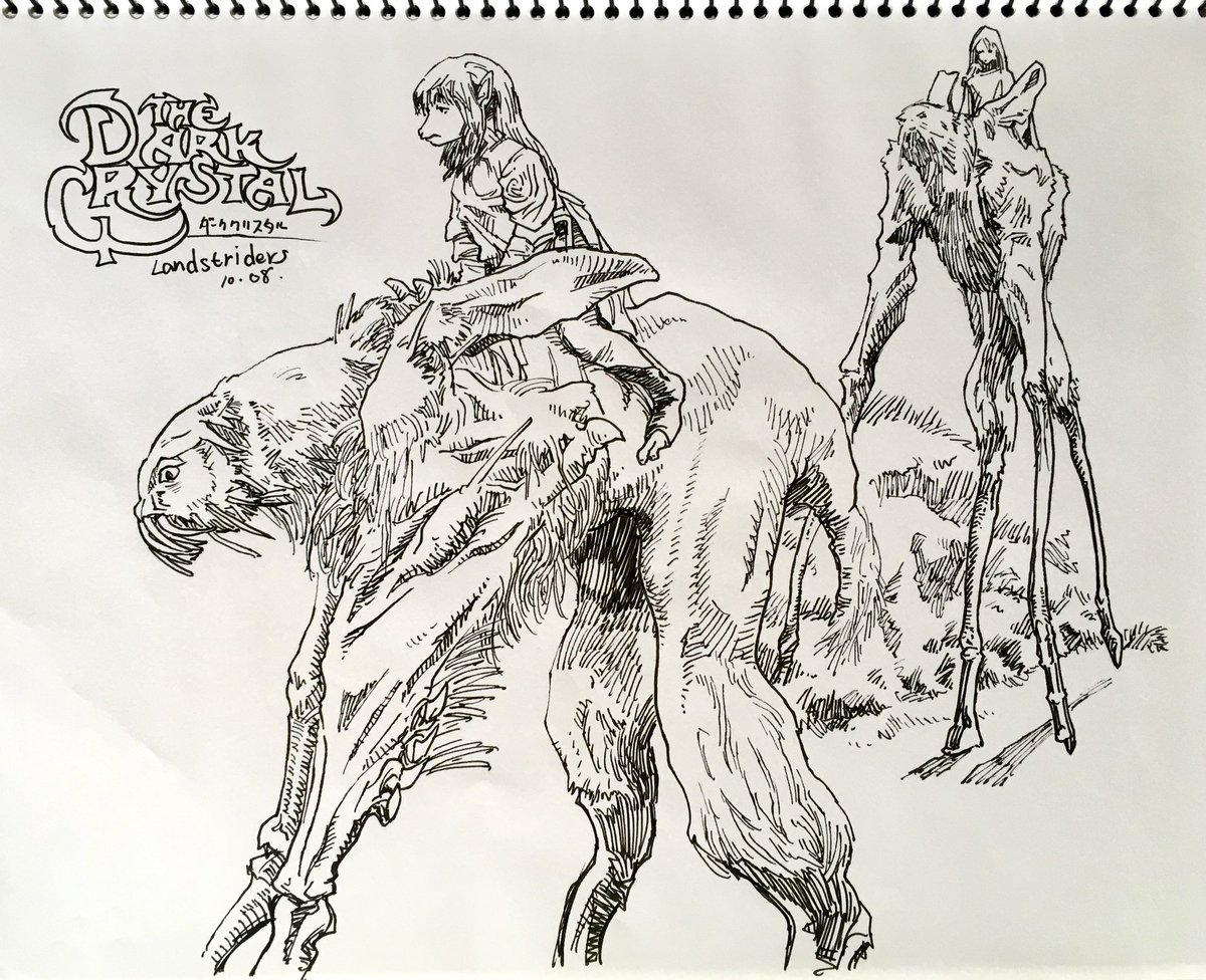 (絵)私の好きなケモ絵師様の墨佳さんが推している、ダーククリスタルという海外の人形劇が気になり、私もちょこっと見てみましたという落書き ウル・ヴァ(亀っぽい種族)とスケク・マル(鳥っぽい種族)というキャラがとてもカッコイイ (一部関係ない落書きあり) #DarkCrystal