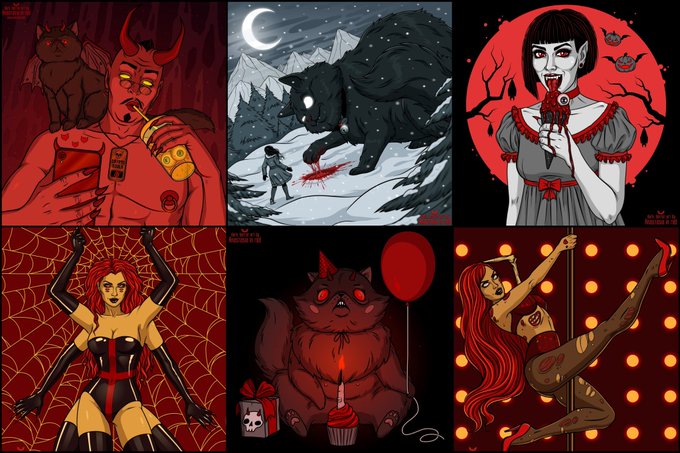 #PortfolioDay Hey! I'm a dark, horror artist and illustrator from Russia 😈 Here are some of my artworks. #darkart #darknft