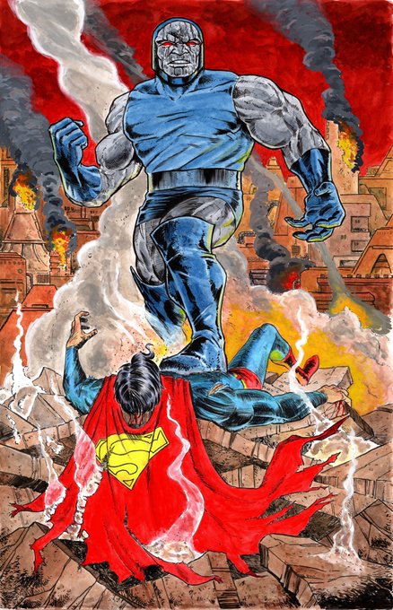 Recent commission. Darkseid vs Superman. Ink, watercolor, and gouache on bristol, 11x17. #Darkseid #Superman #dccomics #comicart #commissionsopen #illustration