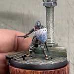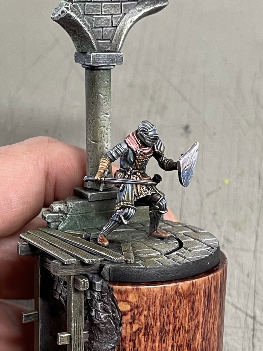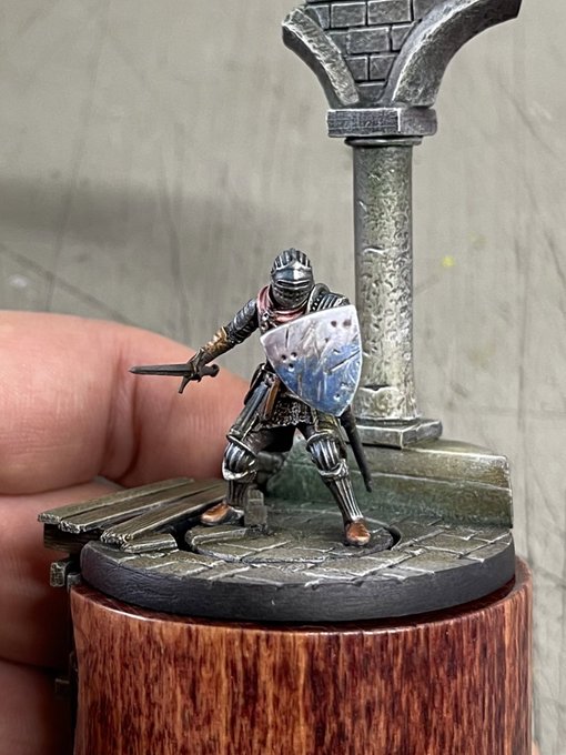 よっし! GILLGILLさんの上級騎士メタルミニチュアがひととおり塗れましたっ! ミニチュアの周りの城下不死教区のベースは新たにキャラ作ってゲームしながら資料集めて自作してみましたよー。 まぁ、あとはおうちでウットリタイム&気になったとこ手直しとかしまする。 #DarkSoulsRemastered
