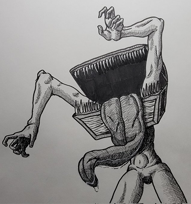 Day 29: uh-oh, when will I learn not to trust chests. #inktober #inktober2022 #inktober2022day29 #mimic #DarkSoulsRemastered