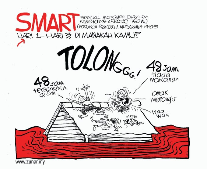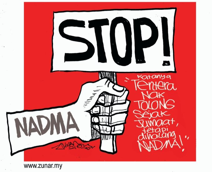 Katanya TENTERA nak tolong sejak Jumaat tapi dihalang NADMA. Kerajaan diminta jawab tuduhan ini. Please share More @ zunar.my #daruratbanjir #nadma #kerajaanmalaysia