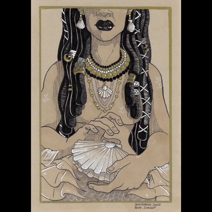 INKTOBER 4 Scallop Couldn't draw anything else but a mermaid for this theme. #ArtByMaylis #inktober #inktober2022 #day4 #scallop #mermaid #underthesea