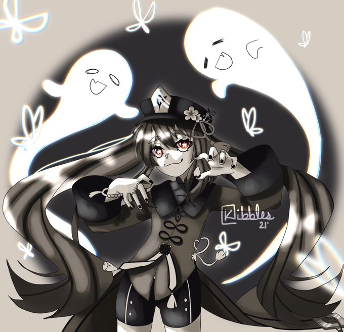 I finally was able to get to one lol its late but its still the 6th here, its a little sloppy but its done! 🎉 Im gonna try to do more but lifes a bit hectic right now so no promises sadly 😅 #inktober #inktober2021 #spirit #daysix #hutao #ghost #genshinimpact #digitalart #原神
