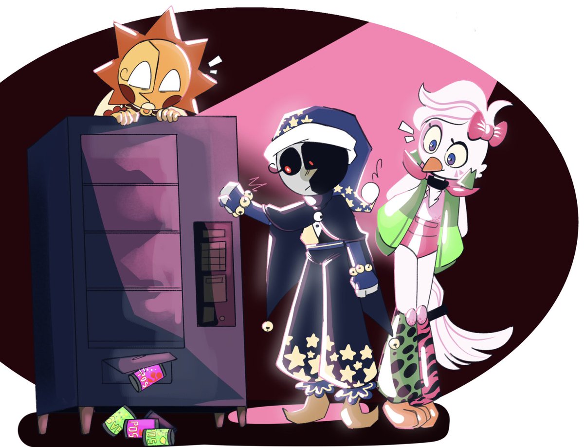 The vending machine is giving out free drinks y’all 🤾 #fnaf #fnafsecuritybreachfanart #fnafsecuritybreach #moondrop #sundrop #daycareattendant #chica #glamrockchica