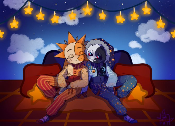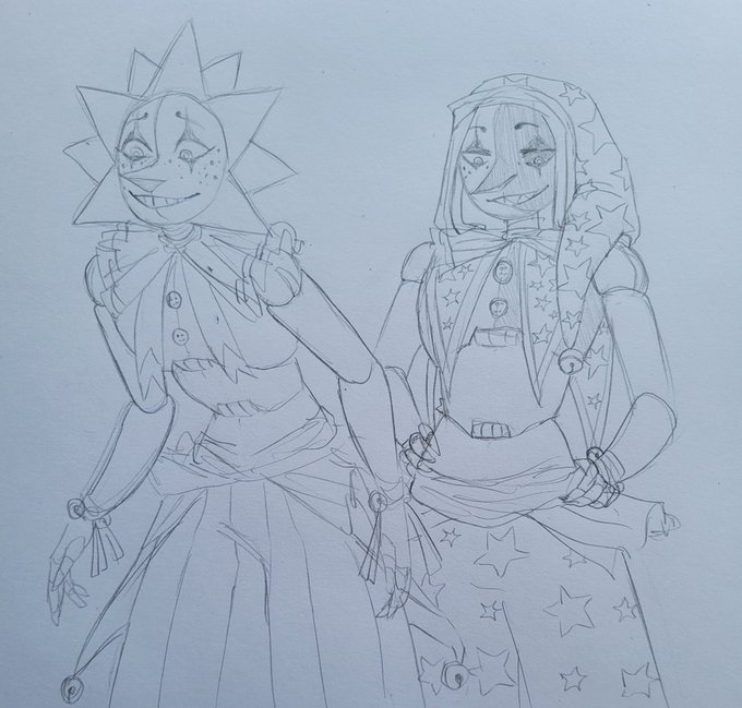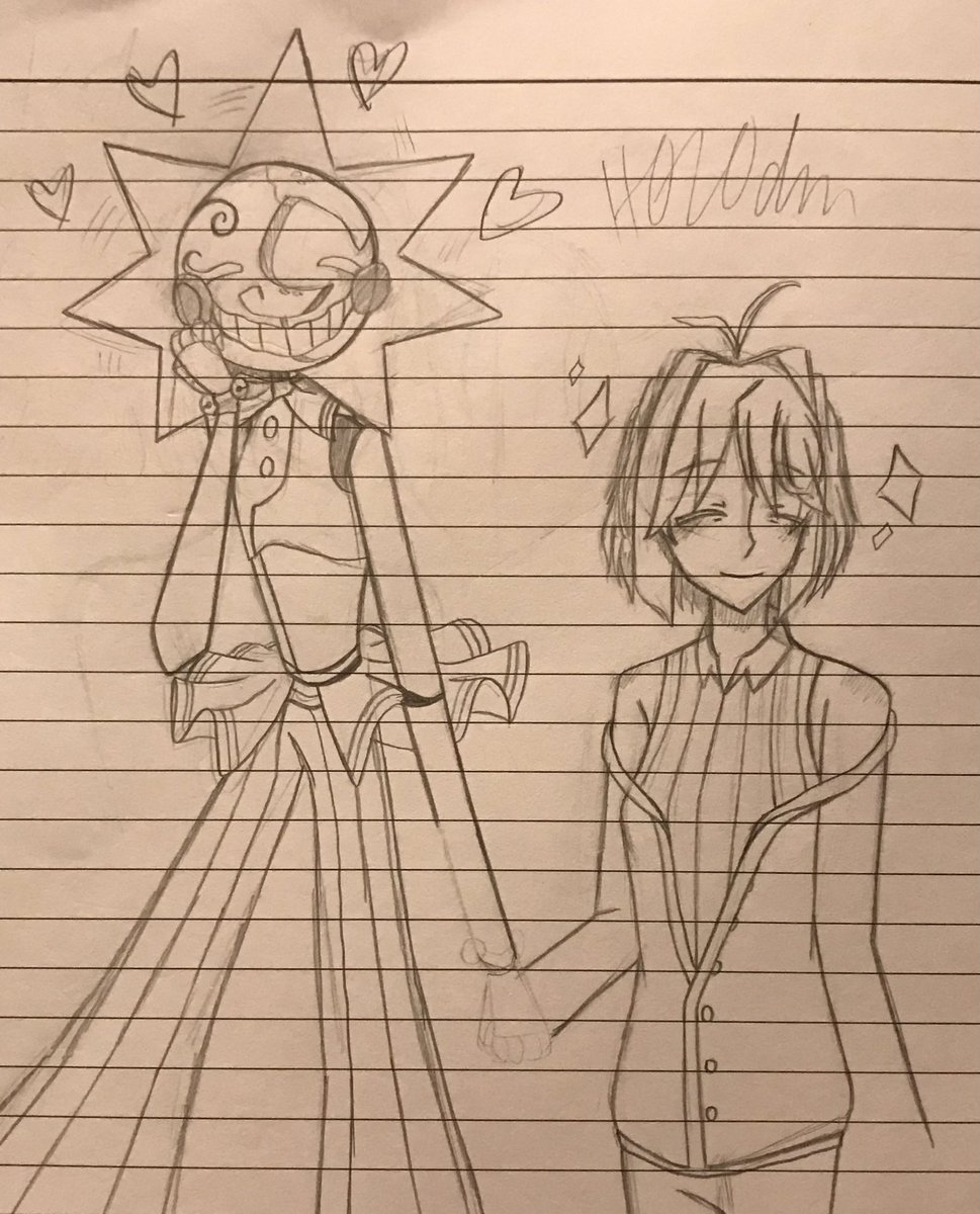 Just HAD TO draw @CinnamonOrange2's sun and moon, they've been living in my head rent-free for forever JSDHKJDFH #sundrop #moondrop #sundropfnaf #moondropfnaf #fnafsb #securitybreach #daycareattendant #sundropfanart #moondropfanart