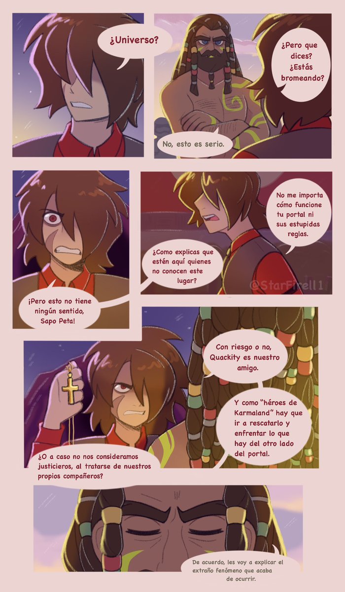 “De regreso a Casa” (páginas 5-6) Tras los hechos inesperados que acaban de ocurrir, Quackity se encuentra confundido y desorientado respecto a la nueva locación que se encuentra. Mientras tanto, Luzu está enfadado con Sapo Peta y quiere respuestas. #DeRegresoACasa #Karmalart #AU
