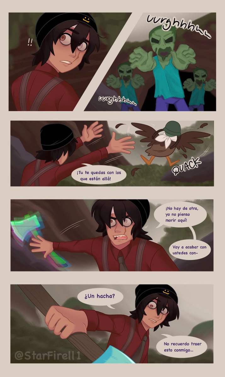 “De regreso a Casa” (páginas 15-16) . Quackity decide ayudar y pelea junto a su pequeño amigo, pero comienza a actuar un poco extraño… #DeRegresoACasa #karmalart #AU #KarmalandAU