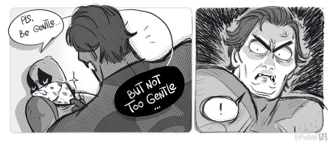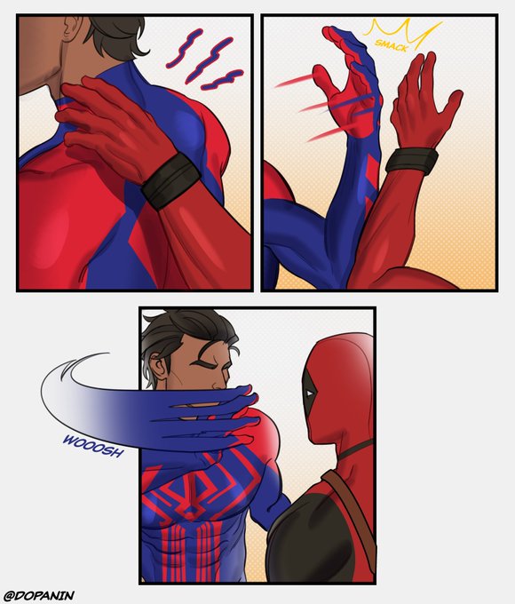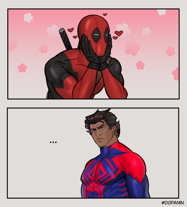#MiguelOHara #Deadpool 因为“不小心”破坏了ml的纳米战衣,dp请pbp教他为ml织毛衣,作为道歉的赔礼。结果... Miguel:“奇怪...为什么我觉得上当了?” twitter.com/RealSilentShee…
