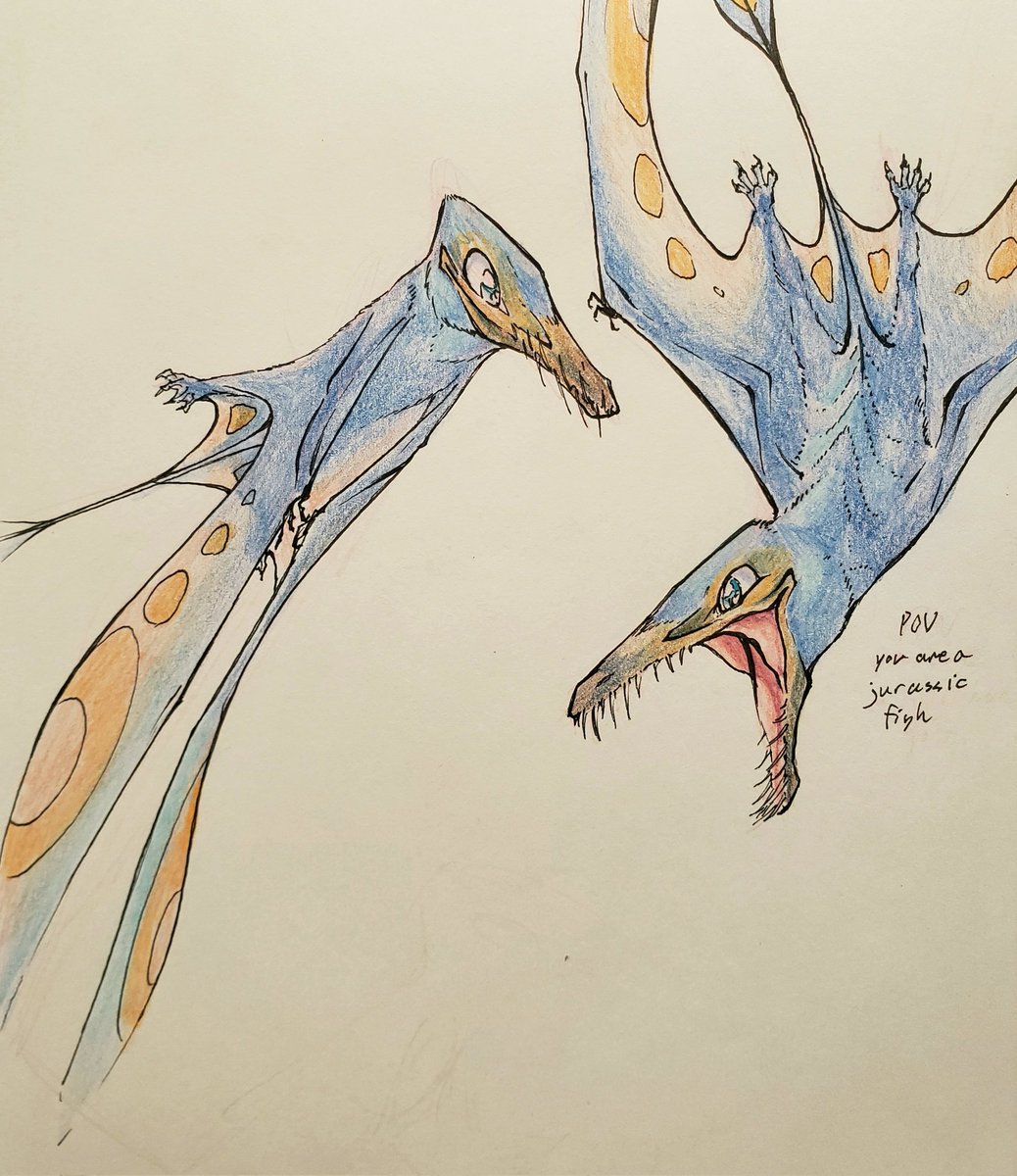 @WryCritic @Irishpalaeo @funstonpaleo @Dr_Butty @TomChallands @JurassicClark1 @tanytrachelos @AmeliaMPenny @SteveBrusatte @CurrentBiology @EdNapLifeSci @ENUApplyScience @EdinburghNapier Dearc sgiathanach (new Scottish pterosaur). Shoehorned #pterosaur interlude into Animal Behaviour #EdinburghNapier sessions on migration, & play. Prompts question: did pterosaurs migrate, & play? Forgive my palaeoart. #Dearc #Dearcsgiathanach #paleoart #palaeoart #FossilFriday