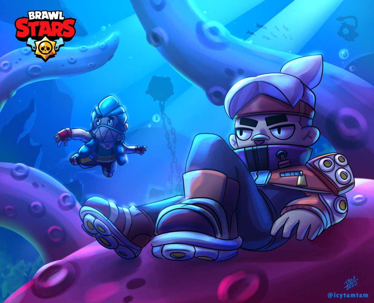 Chilling under the sea 🌊 #DeepSeaBrawl rough fan art! =] Am I over these new skins’ designs (especially Octo Fang)? Absolutely not <3 #BrawlStarsArt #BrawlStarsFanArt #BrawlArt @BrawlStars