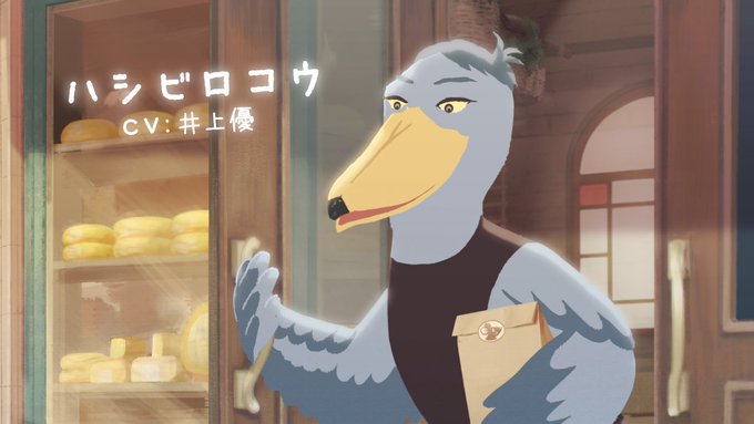 【キャラクター紹介】 🦤ハシビロコウ(cv:井上優)🦤 -・-・-・-・-・-・-・-・-・-・-・-・ 「マウスチーズ」の常連客で、うーにゃんにも親切な紳士。キャラクターはクラウドファンディングのにがおえキャラ出演コースで決まりました! #子猫の配達員うーにゃん #DeliveryKittenUnyan