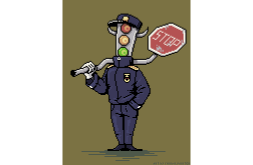 Not a "#demonsona" per se, but a traffic demon for today's @Pixel_Dailies theme #pixelart #ドット絵 #pixel_dailies #DemonTurf
