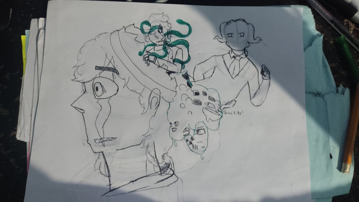 finally finished the sketch :'D Harr later the digital version I promise, I just want to rest after the exam's week #DemonsOfThePastDtiys #quackityfanart