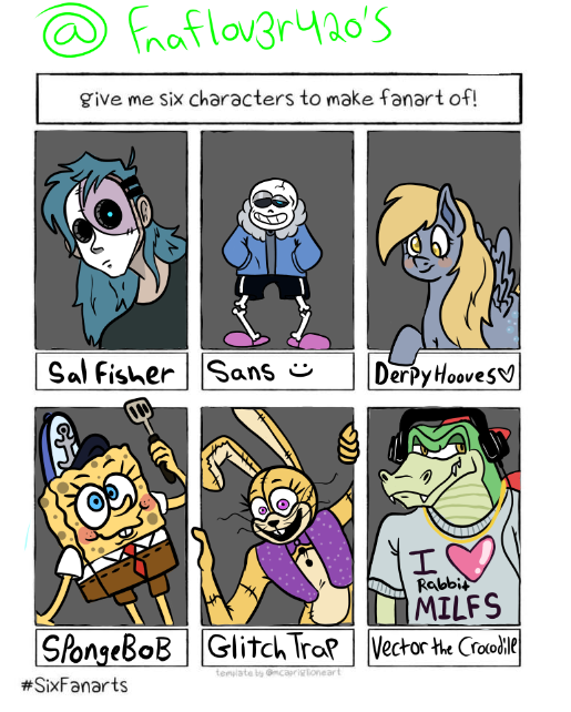 I did the #SixFanarts thing!! My insta friends chose the characters! #derpyhooves #spongebob #undertale #sallyface #fnaf #sonic