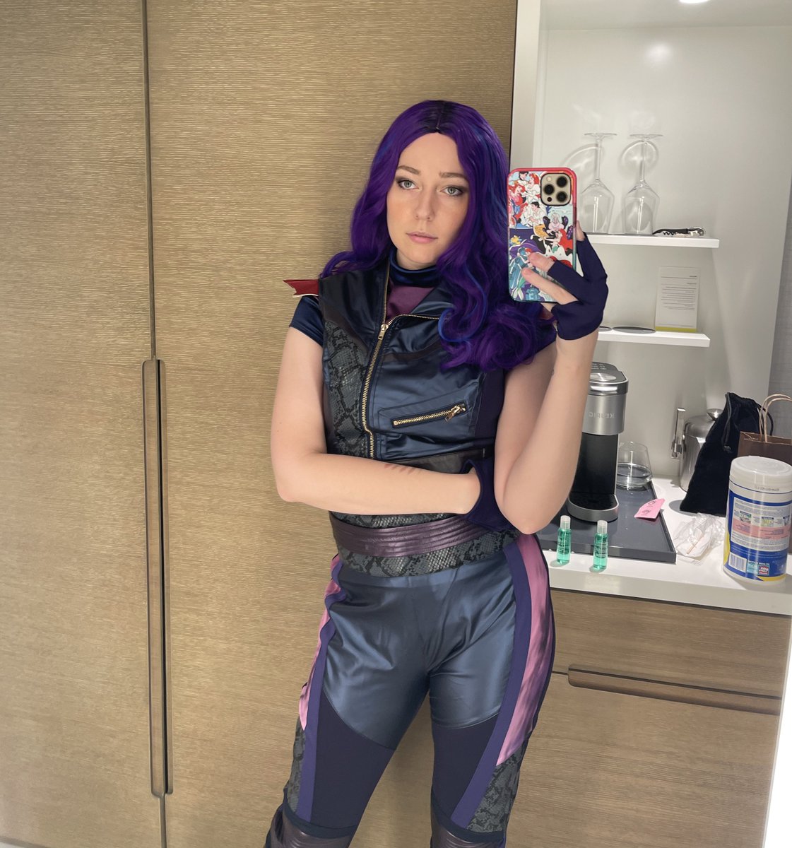 This year, Mila walked her image, and by May, cool photos will be ready 🤤 I love it so much @DoveCameron #Descendants #Disney #DisneyDescendants #DescendantsCosplay #dovecameron #Cosplay #Mal #DisneyCosplay #DescendantsMal #Descendants3 @descendants