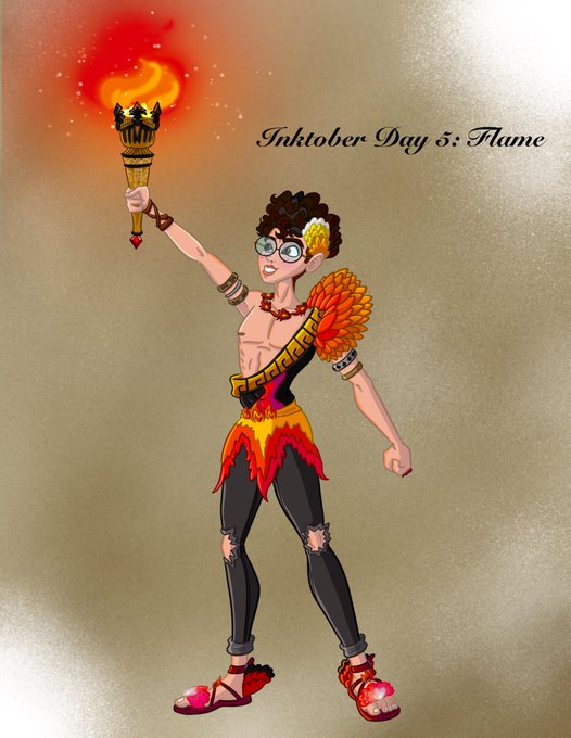 Inktober day : Flame. Gorgeous Pyros, son of Prometheus, practicing with his magic torch that has a flame of the same fire that his father stole from Zeus. #sketch #draw #art #artwork #illustration #procreate #disney #everafterhigh #descendants #inktober2022 #princevanya